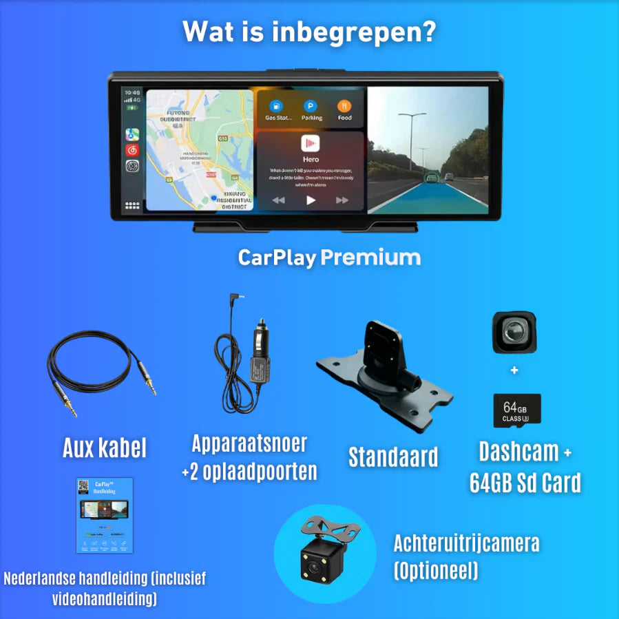 Rijd veiliger met de CarPlay Premium. Bedien je muziek, navigatie en berichten volledig handsfree via Siri, Google Assistant of Bixby.